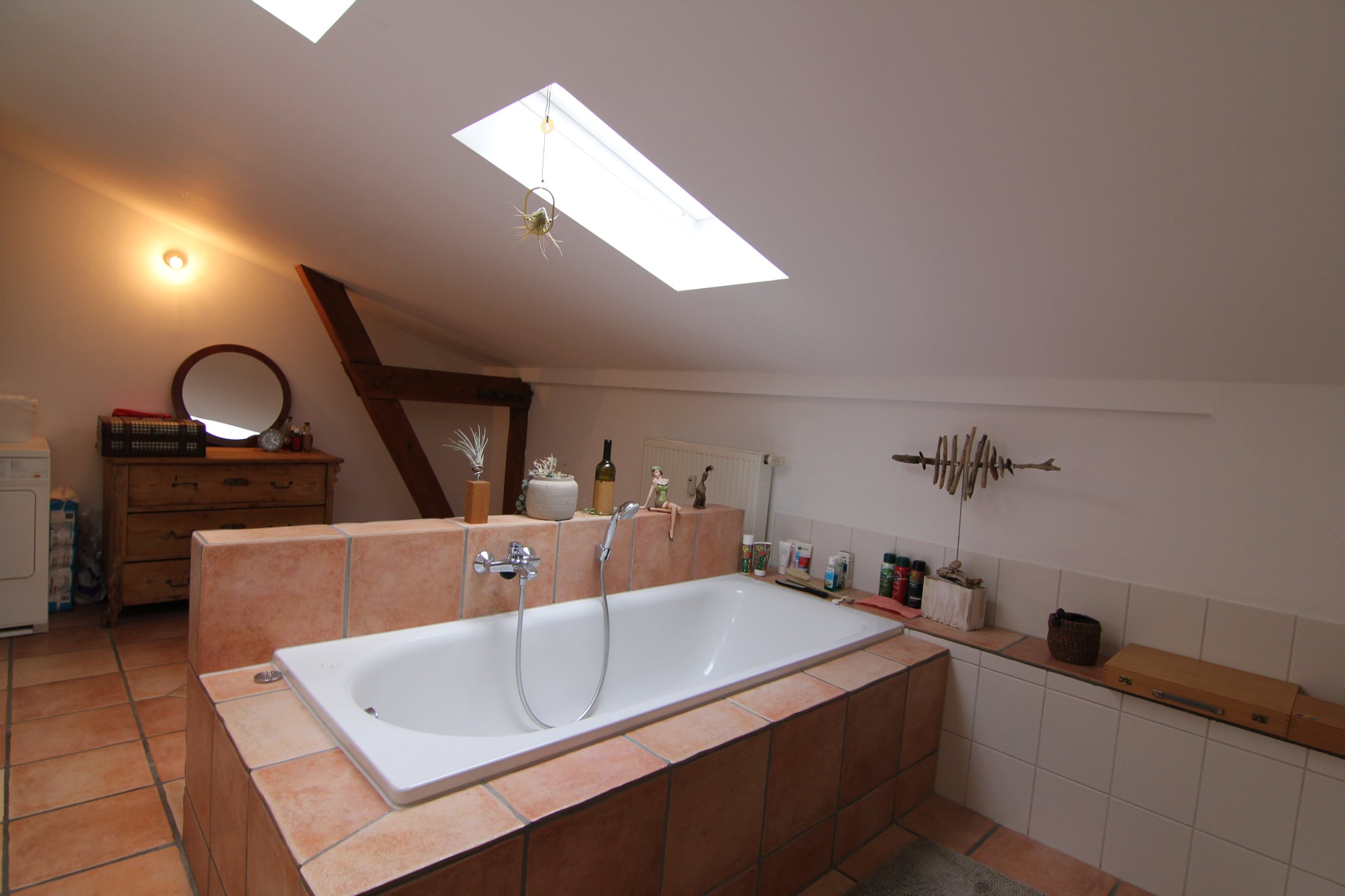 - Waschmaschine und Trockneranschluss im Bad